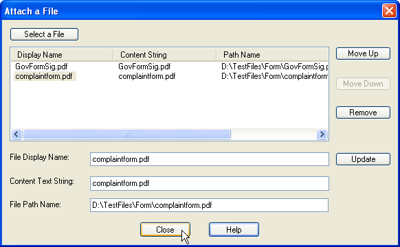 To add more files, click Select a File Button; To remove a file, Click Remove Button; You can use Move Up and Move Down Buttons to change the order of the attached files.