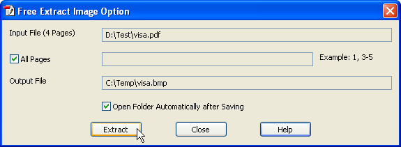 This function provides method for extracting Image inside PDF document from the selected pages.